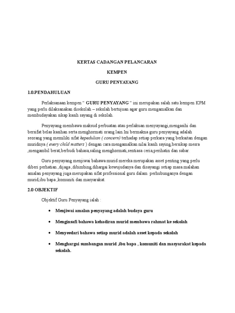 87120330 kertas-kerja-guru-penyayang 1. Up to 3 cash back KERTAS CADANGAN PROGRAM GURU PENYAYANG 2015. Kertas kerja pelancaran amalan guru penyayang sambutan hari lahir murid 2019 1tujuan pelaksanaan guru penyayang adalah bertujuan agar guru mengamal dan memb Prasekolah.
